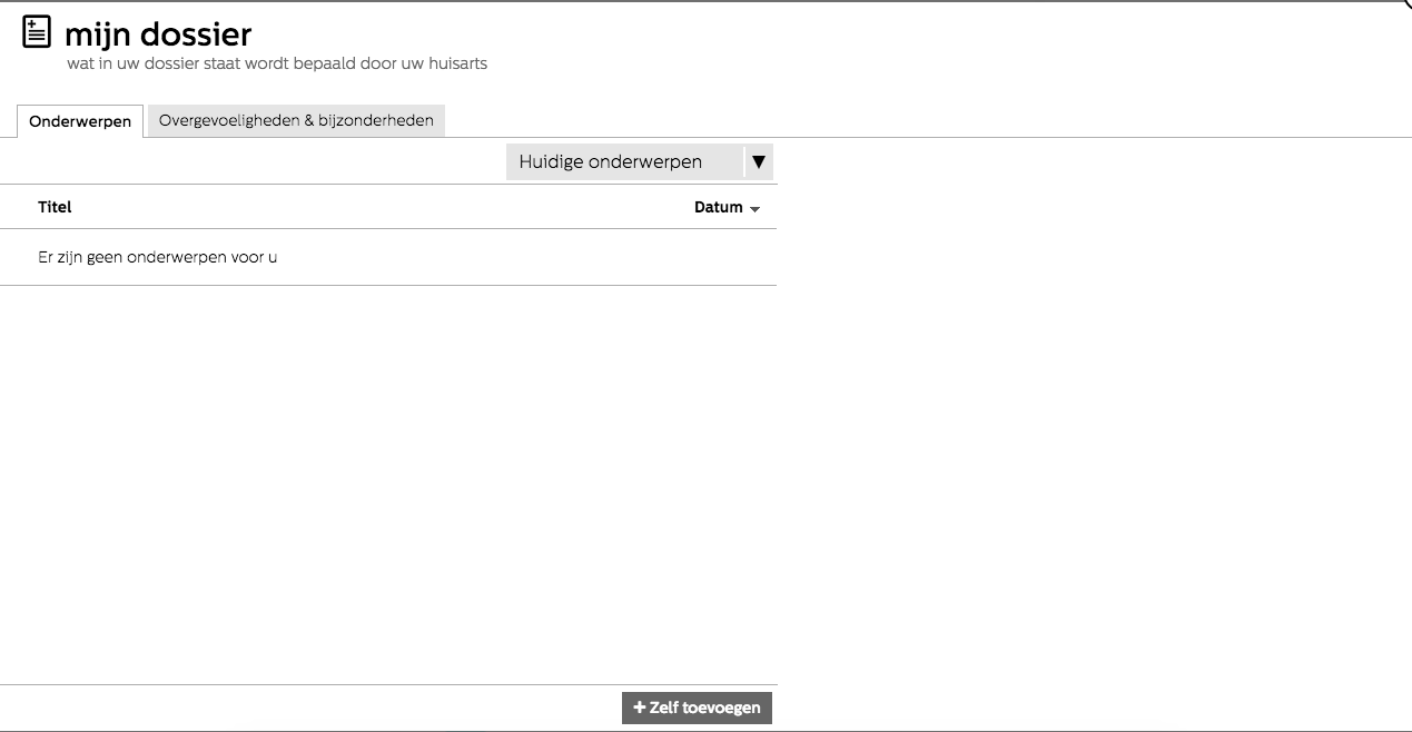 Uw gegevens en uw aangemelde zorg- en welzijnsinstanties vind u terug op uw persoon;ijke pagina. Hier kunt u ten alle tijden uw gegevens en de toegang tot uw verschillende online zorg- en welzijnsdiensten wijzingen.